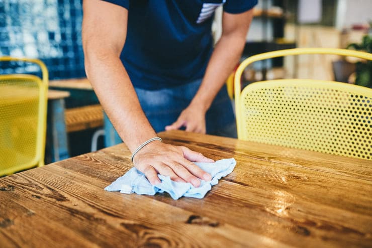 テーブル、椅子、床など、お客様の目に触れる場所は常に清潔に保ちましょう。
