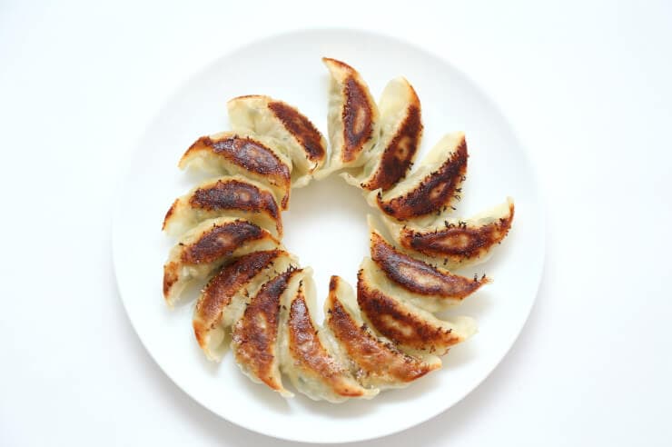 焼き上がった餃子をお皿に盛り付けて完成です。お好みのタレで、召し上がりましょう。