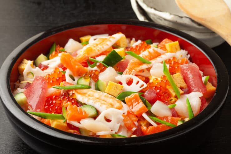 ひなまつりの定番料理、ちらし寿司。鮮やかな色合いの具材を使って、見た目にも華やかに仕上げます。