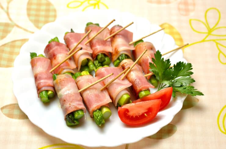 みずみずしいグリーンアスパラを「カリッ」と焼いたベーコンで包むと、風味と食感のバランスが抜群です。お弁当のおかずやおつまみにも最適です。