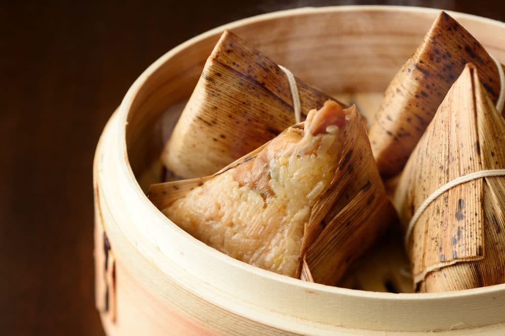 中国風ちまき(粽)は、蒸し器や電子レンジで温めてから食べます。中の豚肉や、しいたけのうまみが米にしみ込み、熱々で食べると香りとコクが引き立ちます。