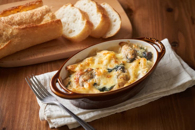 耐熱皿に入れ、チーズをのせてオーブンでこんがり焼けば完成です。ほうれん草の風味とチーズのコクが絶妙にマッチし、家族みんなが喜ぶ一皿です。