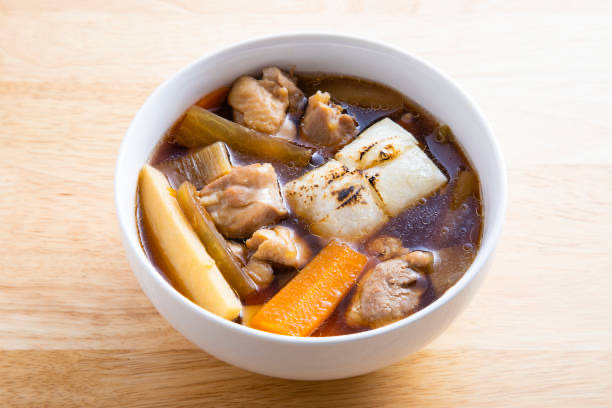焼いた角餅を入れ、大根や人参、鶏肉、小松菜などを加えることが多く、すっきりとしながらもコクのある仕上がりになります。
