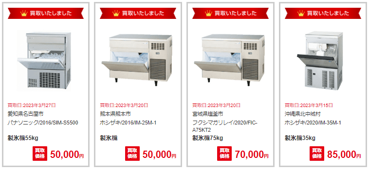 製氷機(95㎏まで)は20,000~80,000円ほどで買い取られることが多いです。