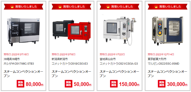 スチームコンベクションオーブンは15,000~150,000円ほどで買い取られることが多いです。