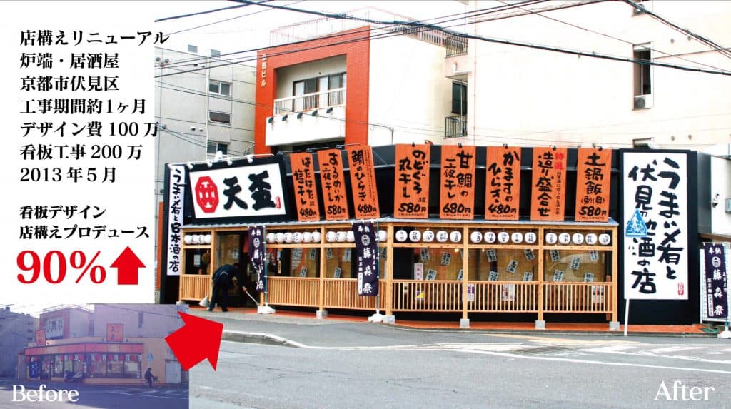 新規オープンやリニューアル後、すぐに多くのお客様を呼ぶには、店構えの変化が特に即効性があり、非常に重要となるのです。