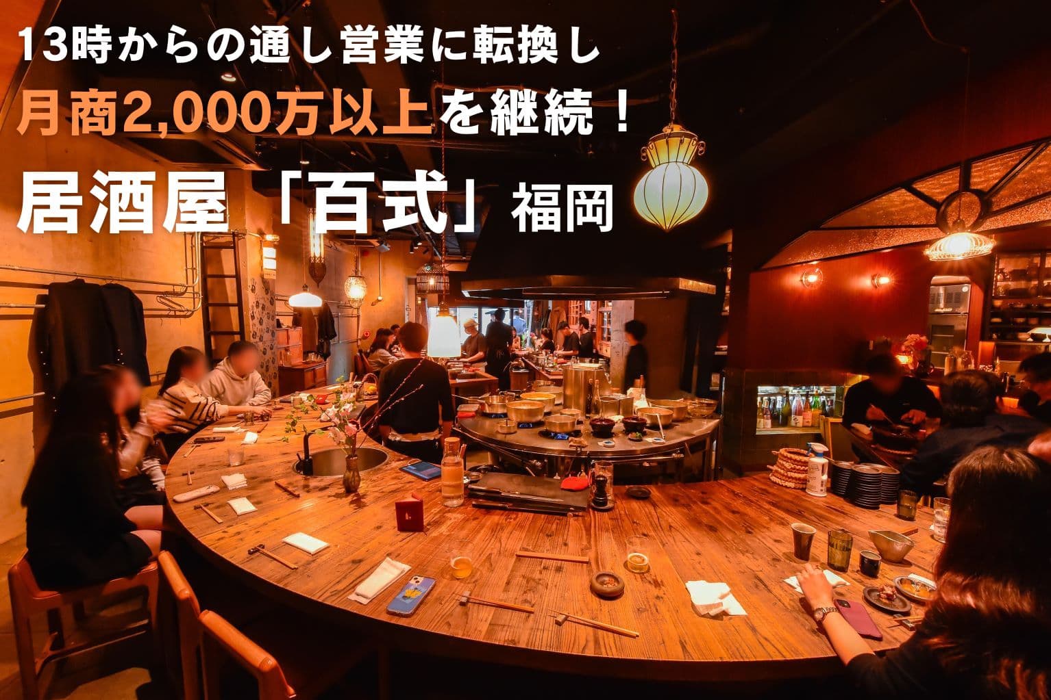 13時からの通し営業に転換し、月商2,000万以上を継続!居酒屋「百式」(福岡)