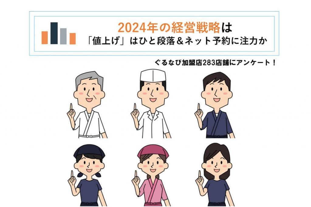「経営状況や2024年の経営戦略」をテーマに、全国のぐるなび加盟店にアンケートを実施。値上げに注力する飲食店の割合は昨年より減少し、ネット予約や予約管理システムの導入に取り組むと答えた店が増えました。