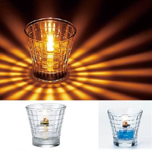 ガラスの容器に入ったオイルに火を灯すと、放射状に陰影が広がり、幻想的な光の空間を作り出します。