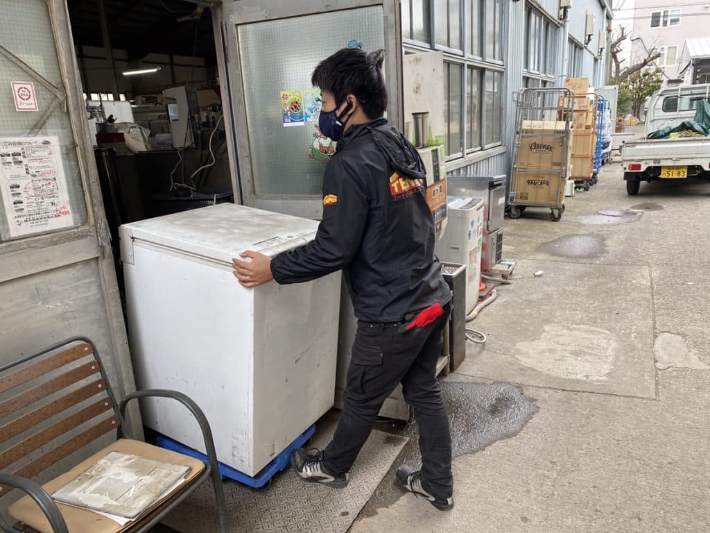 冷凍ストッカーであれば、大半の物は、作業員1名でお伺いし搬出を行います。