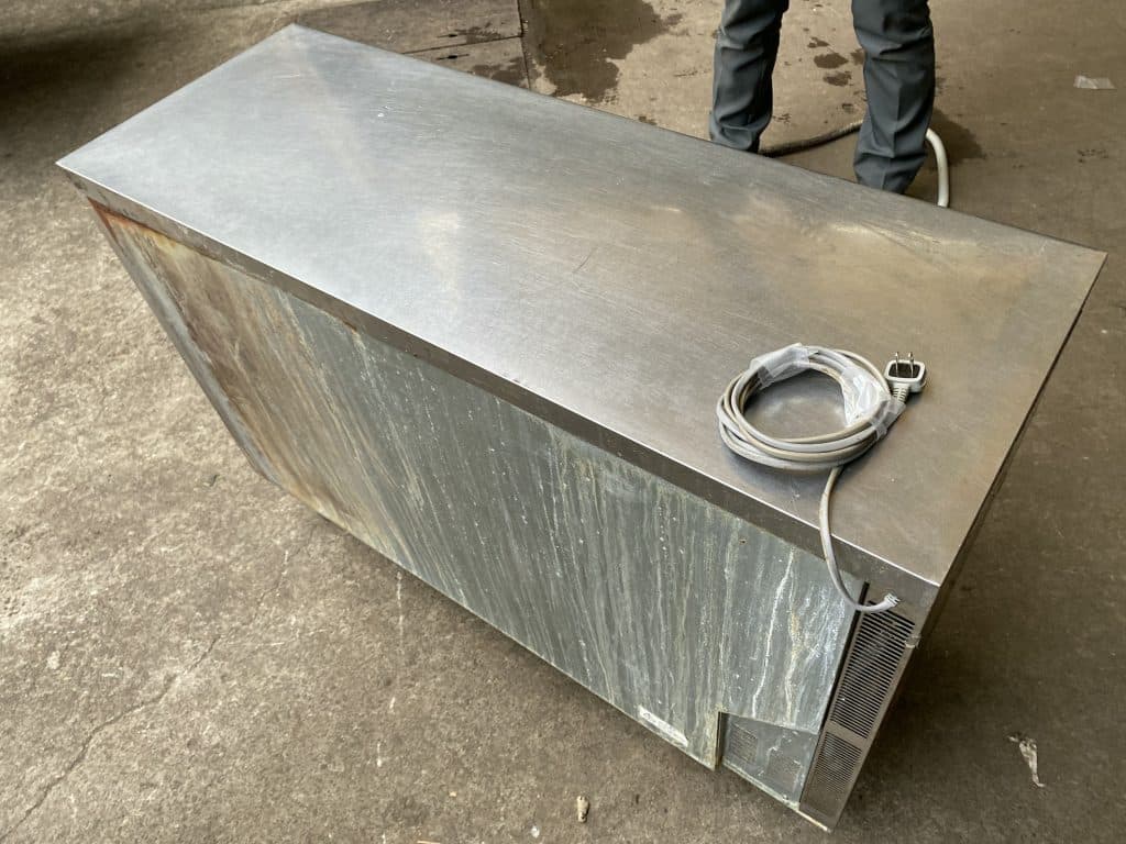 ドリンクのボトルを入れるために棚板をあえて除いて使用していて、どこにしまったかわからず紛失してしまうお客様であったり、魚介類を捌いたりするシンクの隣に置いてあると脚が腐食してしまうなど、その店の業態や扱い方によって状態は様々です。