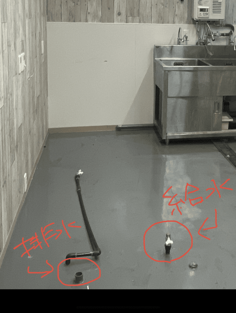 製氷機には給水が接続されていますのでそちらの切り離しを行います。