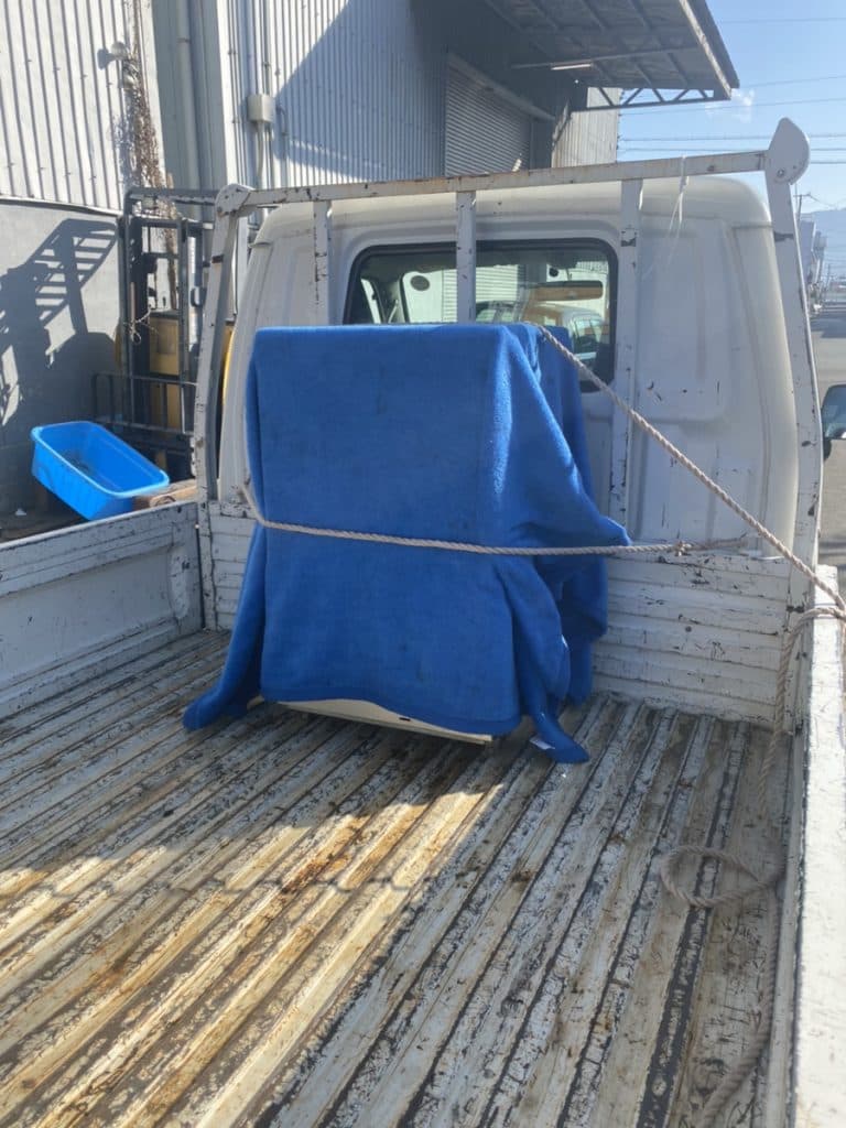 商品に傷が入らないよう毛布をかぶせて対策します。