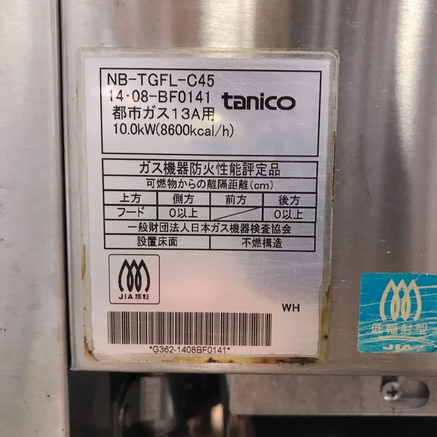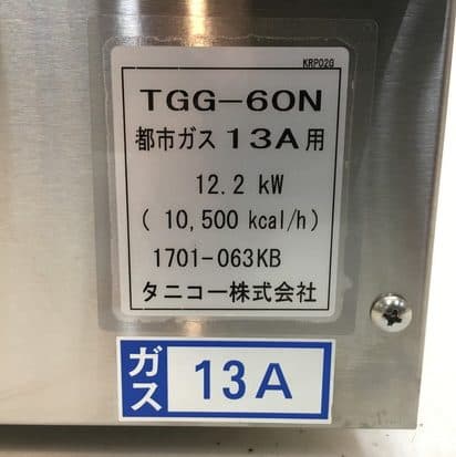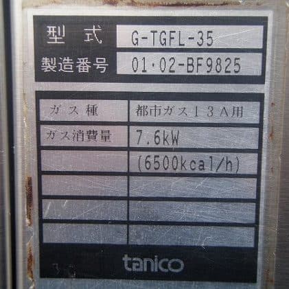 例えば、タニコー製のガスグリドルの場合は、銘板と呼ばれるものを見ます。