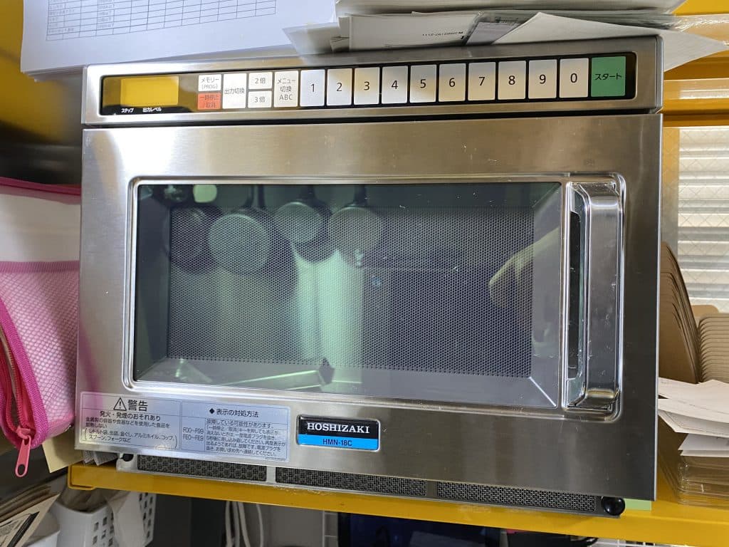 キッチンカーのどの業態にも共通して使用頻度が高い厨房機器といえば、こちらの電子レンジです。業務用電子レンジは100Vと200Vの2種類がありますので、こちらも購入時には電圧の確認が必要です。