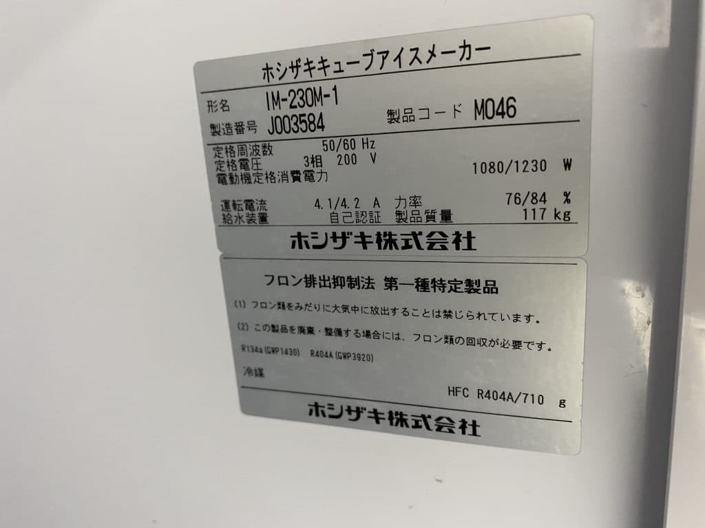 ホシザキであれば、製造番号の桁数が7桁であれば、製造されてから10年以内のものになります。6桁であれば10年以上前に製造されたものになります。(現在2022年度)