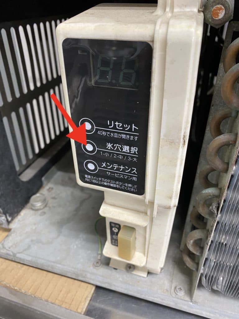 その他の原因の場合、業務用製氷機には穴の大きさを調整するボタンがあります。