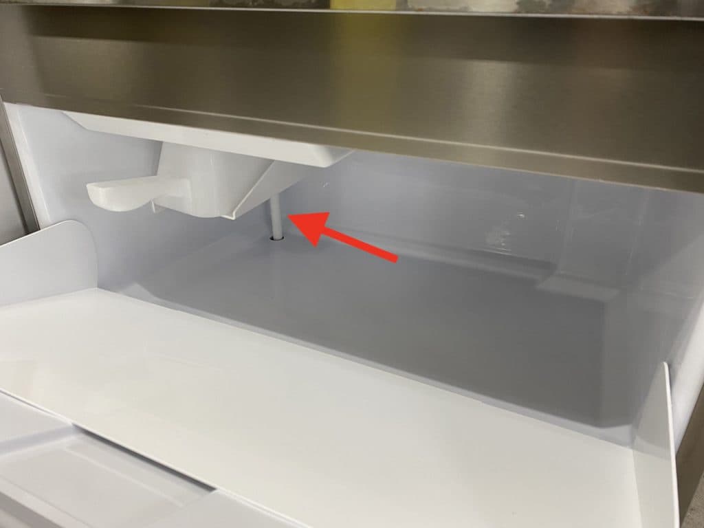- 製氷機は主に庫内左奥に排水の穴がありますので、ハンドシャワー又はホースを排水につないで水を出してください。水圧で排水の詰まり(異物)を取り除きます。