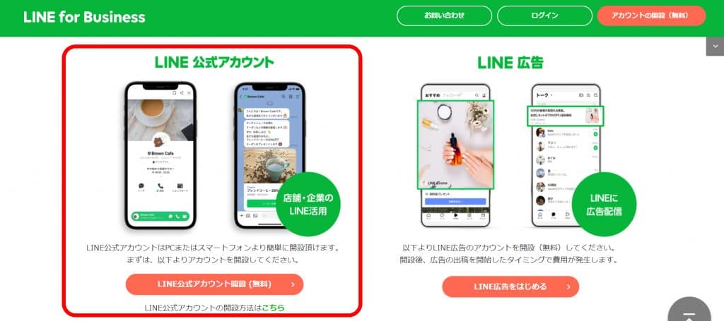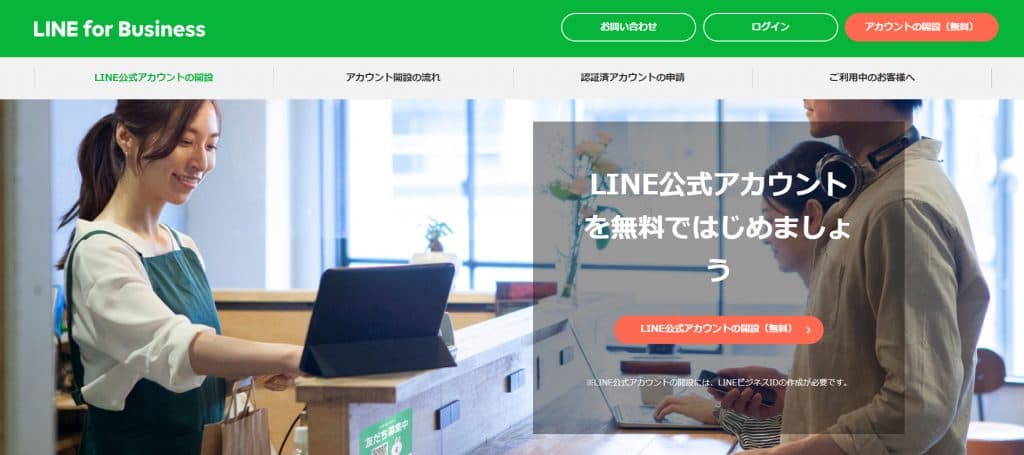 LINE公式アカウントはLINE for Businessのサイトより開設が可能です。