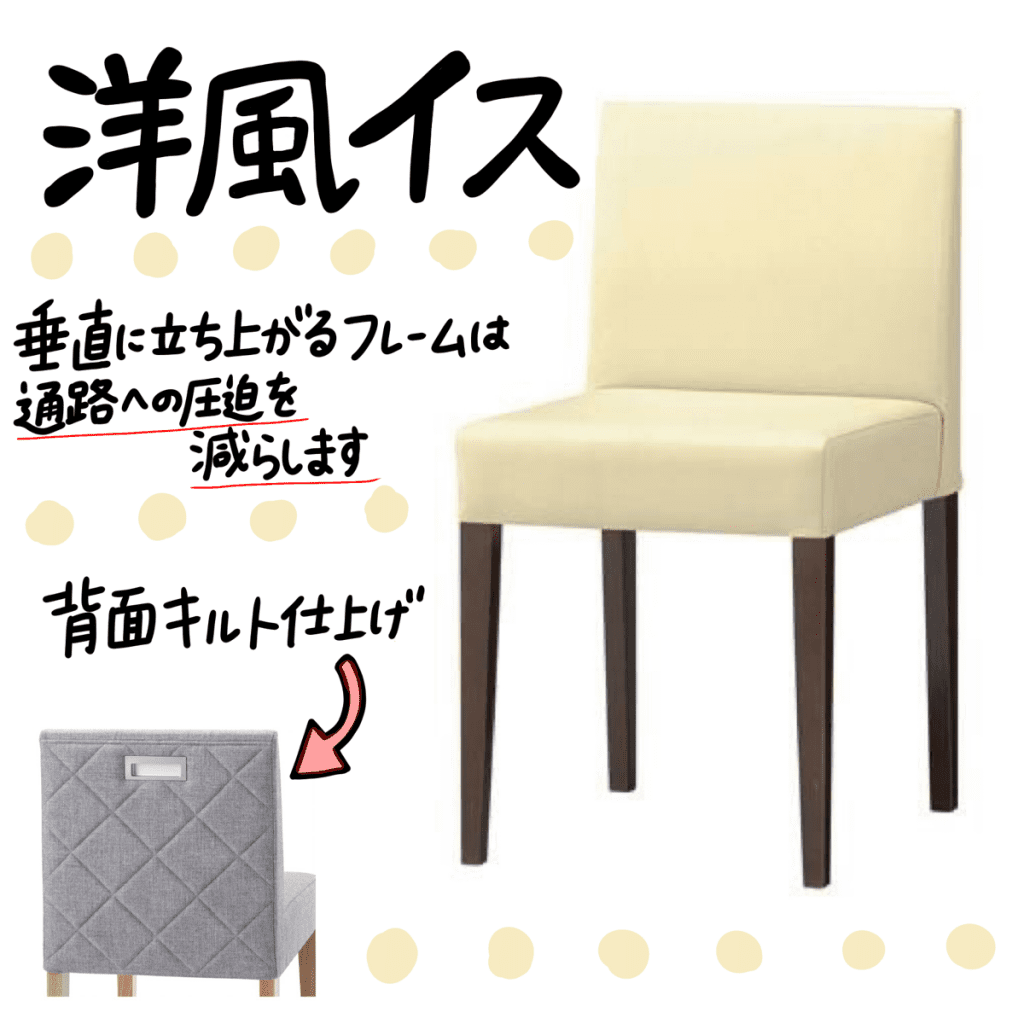 垂直に立ち上がるフレームは、テーブルなどへの収納性に優れるほか、通路への圧迫を減らしてくれます!☆