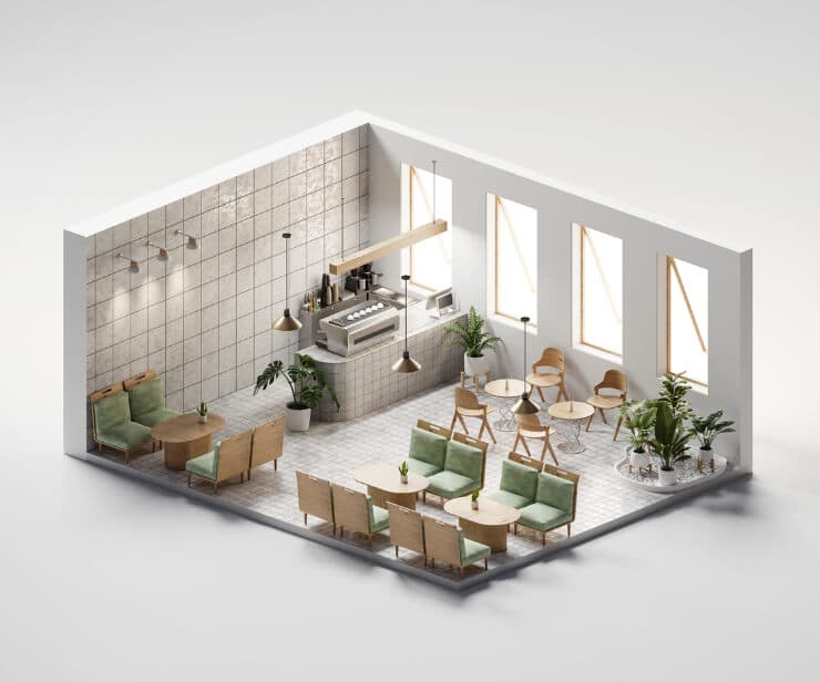 お店のコンセプトに合った内装・外装のデザインを決めます。