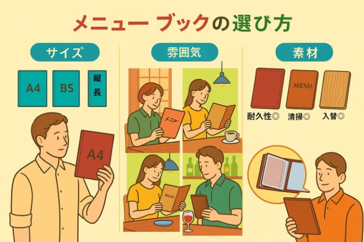 メニューブックの選び方|サイズ・雰囲気・素材をチェック