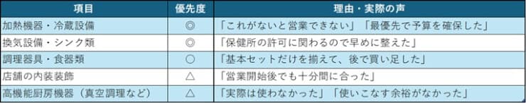 営業に直結する設備を優先し、後回しにできるものは段階的にそろえていく姿勢が大切です。