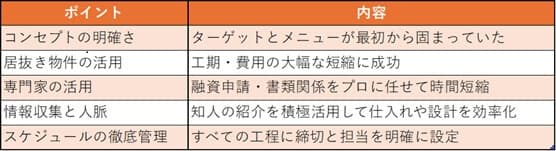 特に「居抜き物件」を活用すれば、設備や内装を流用できるため工期やコストの削減が可能です。