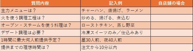 重要なのは、ご自身の店舗でどんな料理をどのように調理し、どれくらいのスピードで提供するのか——“調理オペレーション”全体を具体的にイメージすることです。