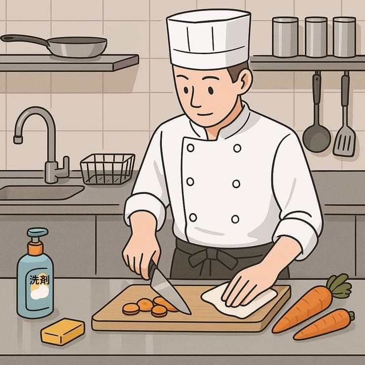 忙しい時間帯に余裕を作るためにも、まずは仕込み中の洗浄・拭き取りをルール化することから始めてみましょう。