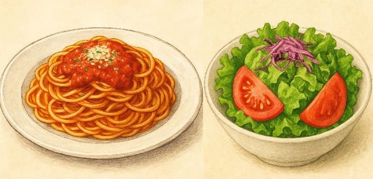 たとえば「サッパリ系の前菜とあっさりめの主菜」や「がっつり系のメインと炭水化物」など、料理の味の系統やビジュアルが似ているもの同士が選ばれやすい傾向があります。