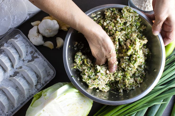 餃子のタネは仕込んだ直後にすぐ包むより、冷やしてなじませてから包んだほうが扱いやすくなります。