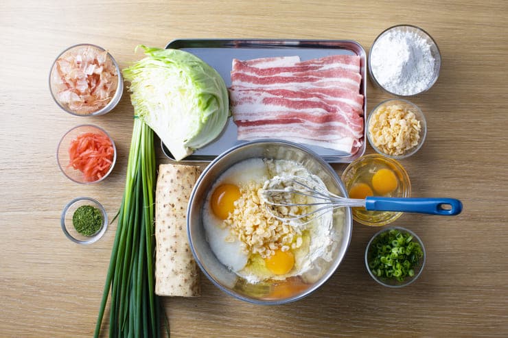 お好み焼きの生地は、小麦粉・出汁・卵などをしっかりと混ぜ合わせる必要があります。