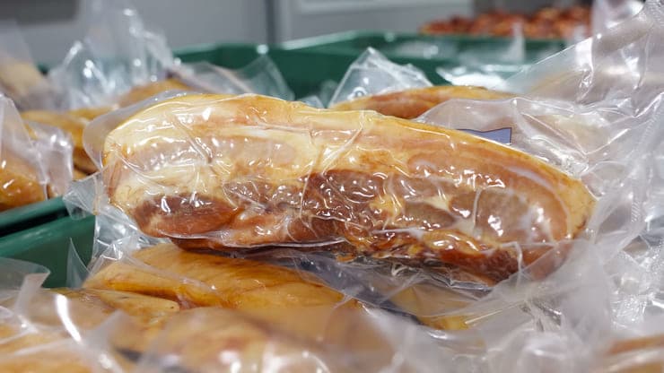 低温調理では、食材を真空パックにして一定の温度で加熱します。