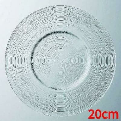 直径200 mm、高さ45 mmのガラス製プレートで、透明感とリム(縁)のデザインが上品です。