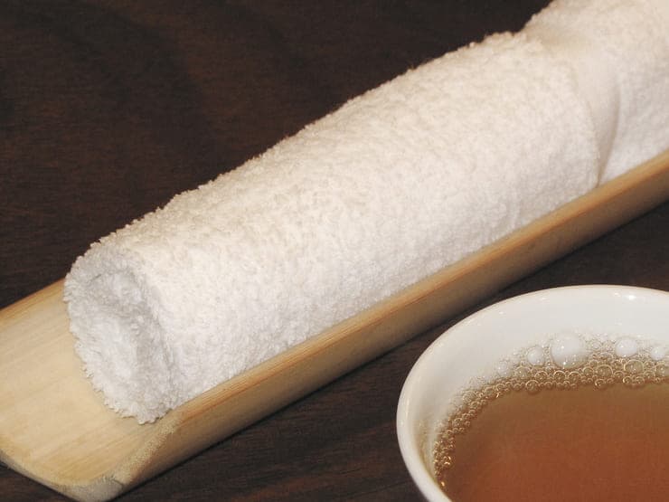 お客様が席に着いて最初に手にするものは、おしぼりです。