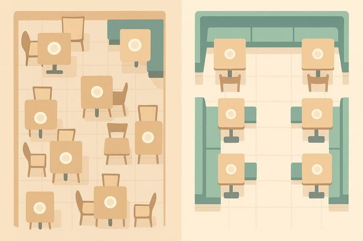 そのため、回転率を高めたい場合は、通路や入口に近い席を増やし、動きが視界に入りやすい配置にすると効果的です。