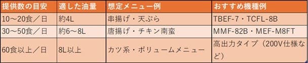 たとえば、4Lクラスの小型フライヤーでは、10〜20食/日程度の揚げ物提供が目安です。