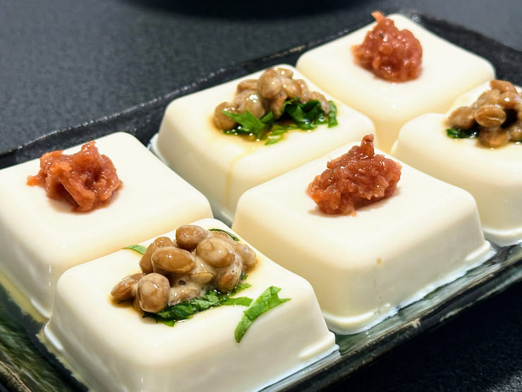 豆腐は白一色のシンプルな見た目ゆえに、トッピングの彩りがそのまま映える強みがあります。