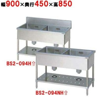 BS2-094H/BS2-094NH【マルゼン】二槽シンク 幅900×奥行450×高さ850mm【業務用/新品】【送料無料】