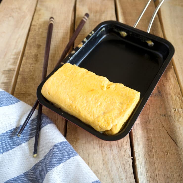 長方形の形をしており、通常のフライパンより玉子を巻きやすいのがポイント。