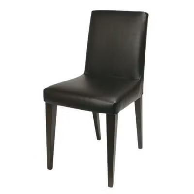 シンプルで洗練されたデザインが特徴の、テンポスオリジナルの業務用洋風ダイニングチェアです。ブラックレザーの座面と木製フレームの組み合わせが、落ち着いた上質な空間を演出します。カフェやレストラン、バルなど幅広い業態に対応できる汎用性の高い一脚です。