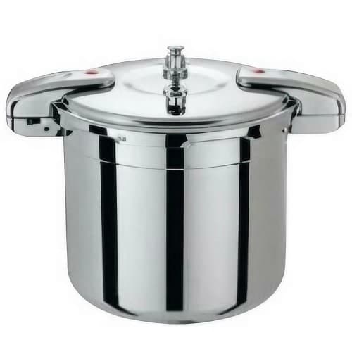 大口径で大容量の圧力鍋で、食材の下ごしらえからラーメンスープまで対応できます。