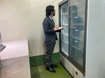 経験豊富なスタッフは業務用冷蔵庫や冷蔵ショーケースに標準で付属している棚板の枚数や排水タンクなどを熟知しているため短時間でリストに記入していきます。