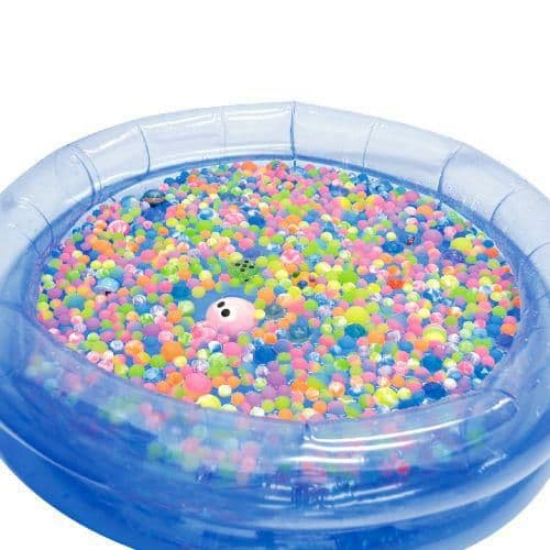 1.用意されたプールや大きな容器に、たくさんのスーパーボールが入っています。