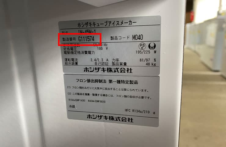 ホシザキの製氷機の例でいくと、数字が「45」となっています。