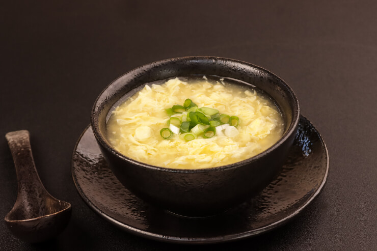 温かいスープにごはんを入れ、卵を回し入れる。