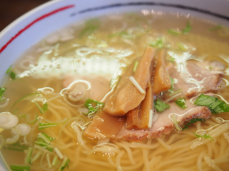 函館ラーメン最大の特徴は、澄んだ塩スープです。豚骨や鶏ガラをベースにしながらも、強火で白濁させず、あくまでクリアに仕上げます。味付けは塩ダレ中心で、出汁の旨味を前面に出す設計です。