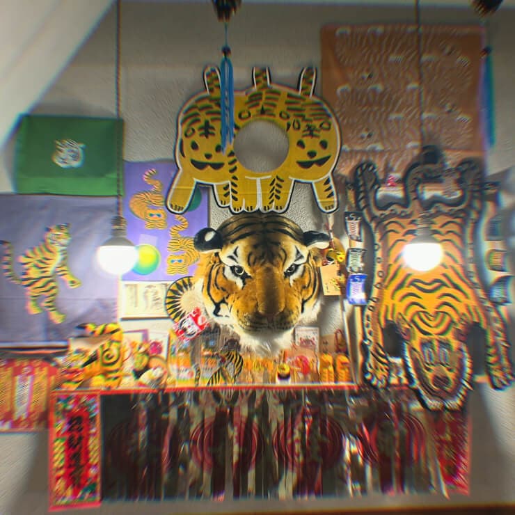 内装には、屋号と同じ虎の暖簾や置物が沢山置かれているのもユニークです。