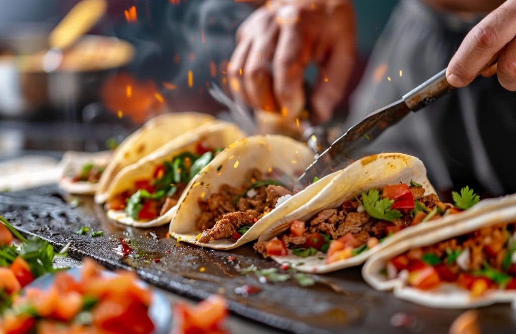伝統的なタコスには、メキシコ料理特有の唐辛子やスパイスが使われることが多く、特にサルサソースには「ピリッ」とした辛さがあります。